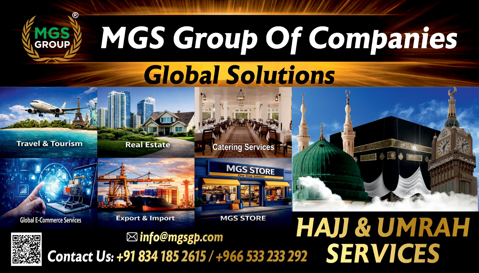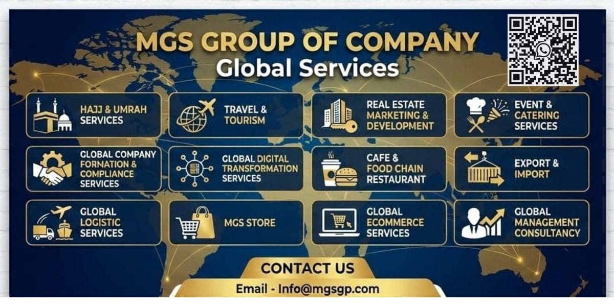 MGS GROUP OF COMPANIES Global Services | One Group – Multiple Global Solutions Empowering Businesses., Serving Communities.,Connecting the World. Providing trusted solutions in Hajj & Umrah, Global Trading, Digital Services, Logistics, Real Estate, and International Business Development to MGS GROUP. Please tell your friends about us. Thank you.